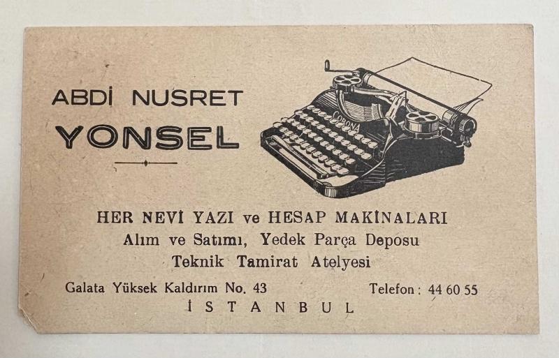 Abdi Nusret Yonsel Firma Kartı başlıklı ürün, Efemera, Müzik, Sinema > Diğer Efemera > Sınıflandırılmayan Efemera kategorisi altında İkinci El olarak satılmaktadır.