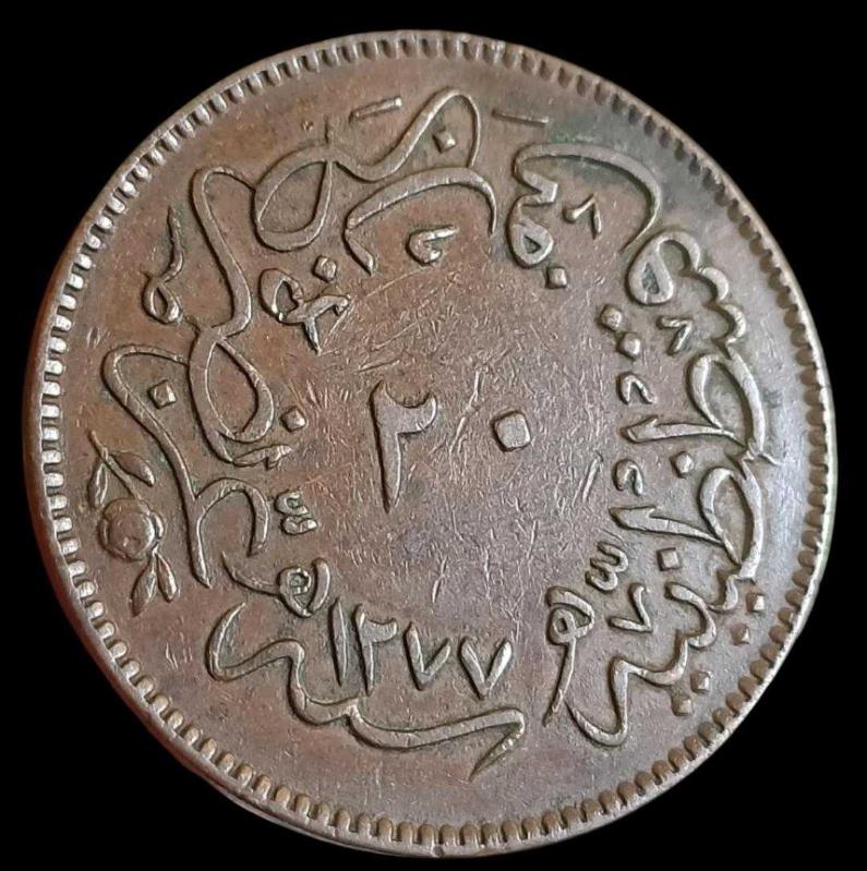 Abdülaziz 1277/1 20 Para Bakır Mısır Baskı