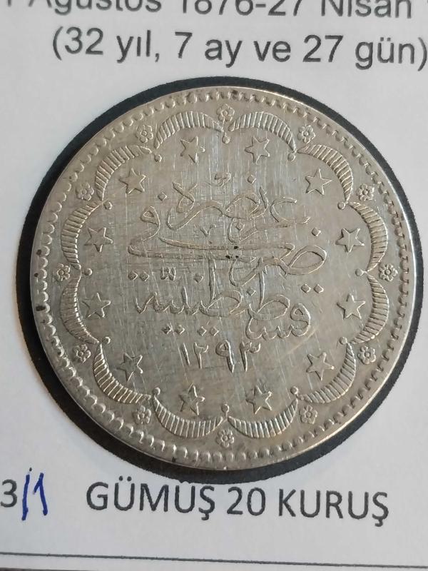 Abdülhamid GÜMÜŞ 20 Kuruş (1293/1) Kostantiniye Koleksiyonluk Gümüş 20 Kuruş., en son bir ay önce güncellenmiştir.