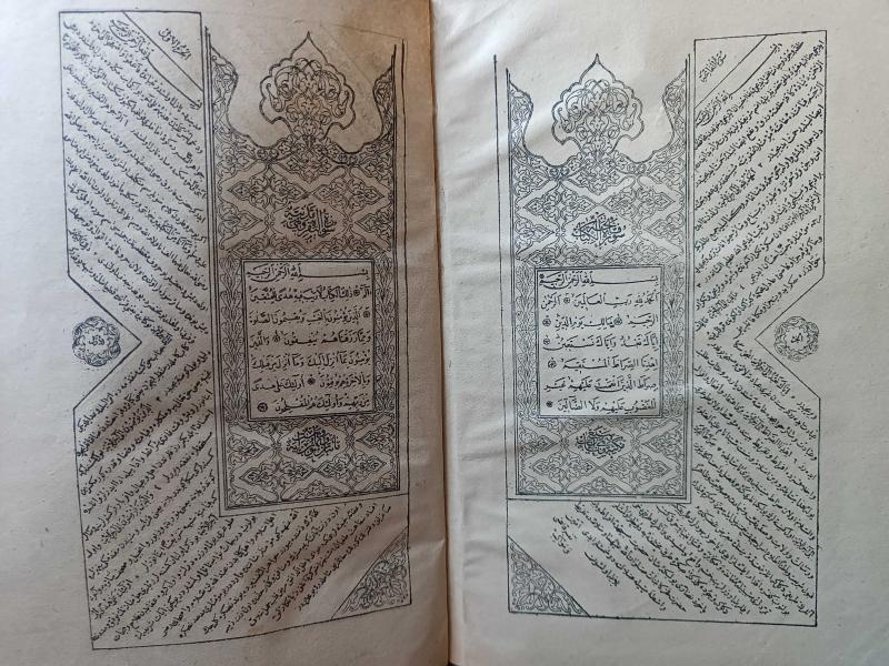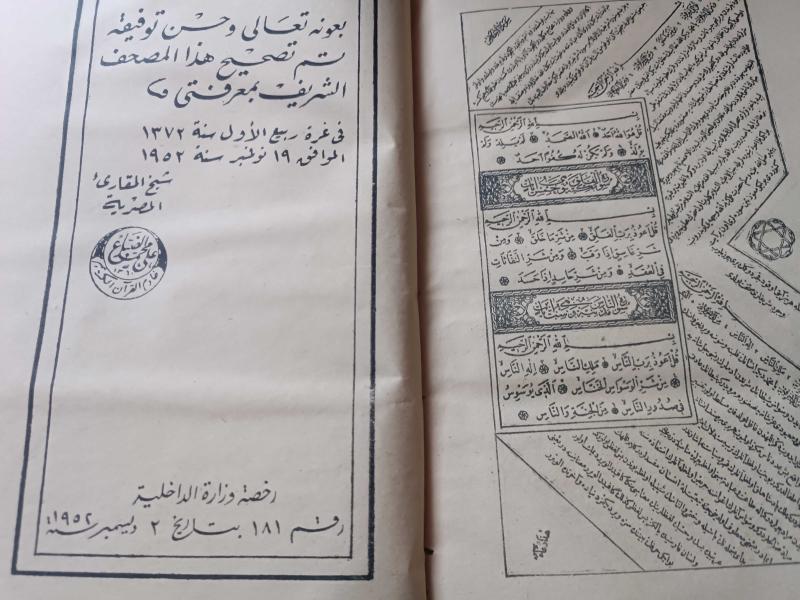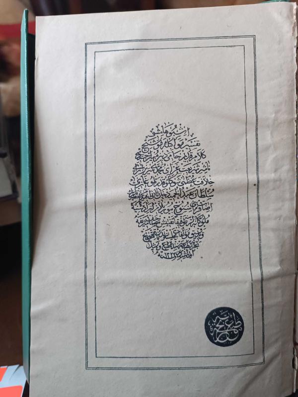 Taş Baskı Kur'an-ı Kerim, 1322, İçerisinde Sultan Abdülhamid'e Dua Bulunmaktadır. Eser temiz. Sağlam durumda. Üzerine elkuran ibaresi ve motifi sonradan basılmış olabilir. Daha evvel cilt bezi aynı olmakla birlikte baskılı değildi. Mısır hükümeti tarafından Kuran ı Kerim hattı ve tashihi noktasından ( Seyh ül Kari El Mısriyye ) Ali Muhammed dabbağ tarafından tashih mührü vurulmuş. 1372 / 1952 Eski Osmanlı coğrafyasında istimali , kıraati onaylanmış olduğu görülmektedir