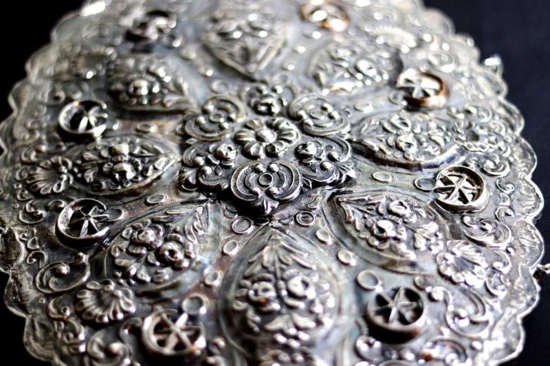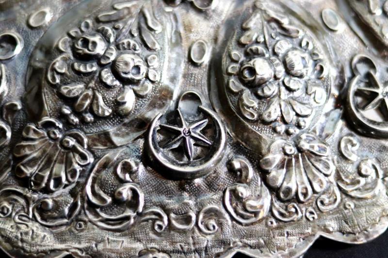 Abdülhamit tuğralı, sah damgalı, gümüş, el kakması Osmanlı duvar aynası. Net 272gr. 33x24cm., 3 yıl önce kitantik’te satışa sunulmuştur.