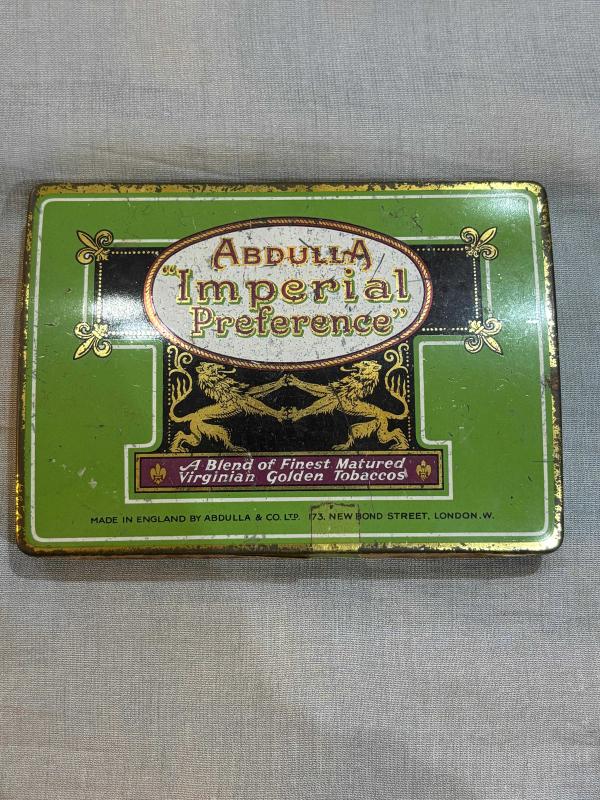 İngiltere'nin Londra kentindeki Abdulla & Co. Ltd. tarafından üretilen bir Abdulla Imperial Preference teneke sigara kutusu
