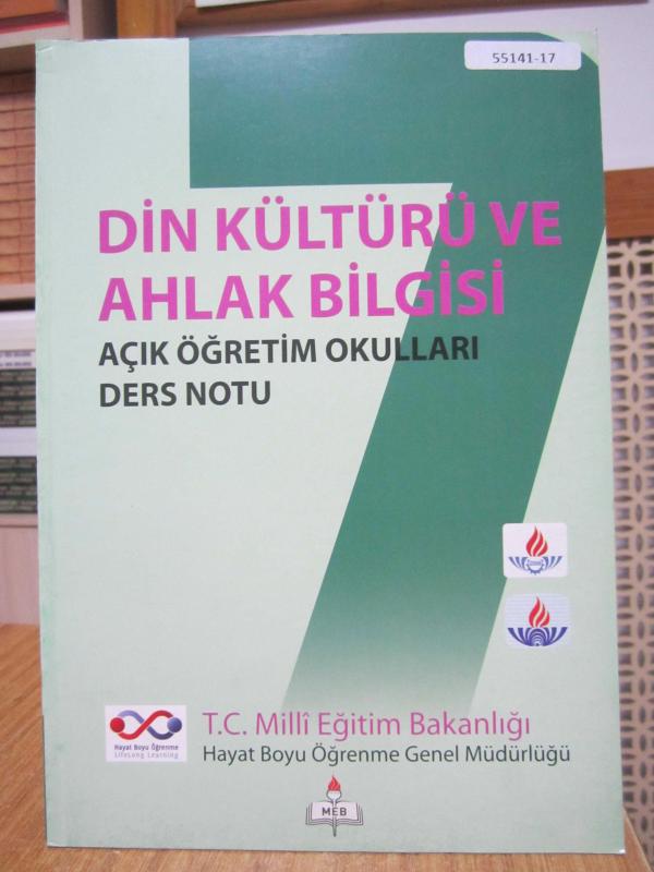 Kitap 2017 yılında Milli Eğitim Bakanlığı Yayınları tarafından [Ankara] yayınlanmıştır. 98 sayfadır. Açık Öğretim Okulları Din Kültürü ve Ahlak Bilgisi 7 Ders Notu Hayat Boyu Öğrenme Genel Müdürlüğü (2017) adlı eser Türkçe dilindedir.