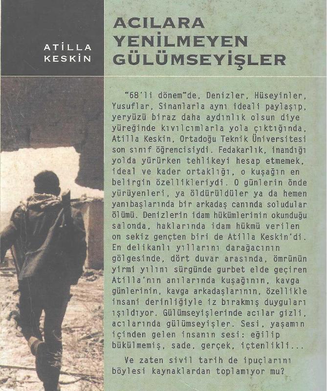 Acılara yenilmeyen gülümseyişler, Atilla Keskin tarafından kaleme alınmıştır. Kitap 1999 yılında Gendaş Kültür tarafından [İstanbul] 975-308-085-9 ISBN kodu ile yayınlanmıştır. 255 sayfadır. Acılara yenilmeyen gülümseyişler adlı eser Türkçe dilindedir.
