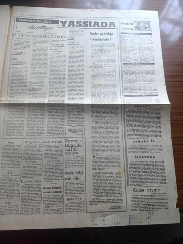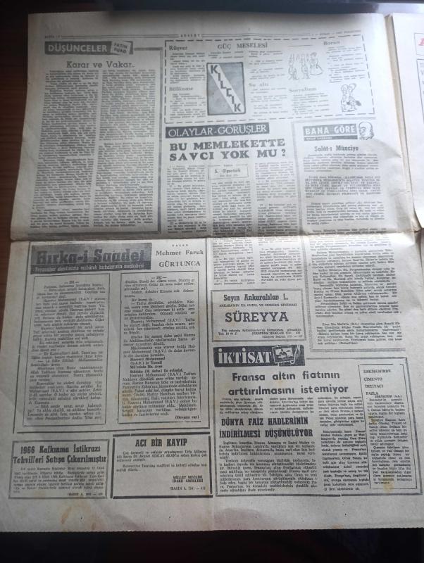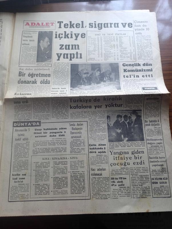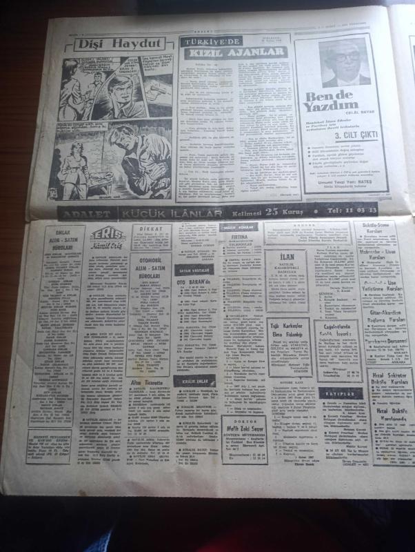 Adalet Gazetesi - 2 Şubat 1967 - yasak bölge yassıada yazan Turhan Dilligil - polis müdürü olan yarbay hiddetle sordu söyle bakalım ölüleri nereye gizledin - Adnan Menderes Türk subayına ve bütünüyle Türk ordusuna toz kondurulmasına tahammül edemezdi Fotoğrafı - Orhan Erkanlı kudurmuş gibiydi ağzına geleni söylüyor küfürler yağdırıyordu - Tekel içkiye ve sigaraya zam yaptı - gençlik dün komünizmi telin etti - Sevda Aydan Budapeşte operasında oynayacak - 300 kişiyi YTP'den ayrılarak Adalet partisine geçti - Çetin Altan hakkında 5 dava açıldı - Türkiye'de Kızıl ajanlar nakleden M. Kenan Par yazı dizisi - Kafiristan - burç falınız - Durakpaşa dershanesi - ilkbahar defileleri - Avrupa Milletler Kupası maçında İspanya ile yenişemedik - Adalet at yarışları - Göztepeliler Fenerbahçe'yi yenip lider olacağız diyor - Sultan Aziz'in başpehlivanı Kavasoğlu Koca İbrahim Yazan Kispetlioğlu - Ali Sami Yen stadı - Kurtdereli Mehmet pehlivanı yaşatırken Koç Mehmet ve Kara Ahmet unutulmamalı adlı eser, Kitap > Süreli Yayınlar > Gazeteler > Türkiye > Genel > Günlük kategorisinde İkinci El olarak satıştadır.