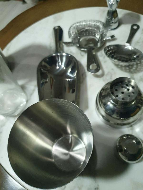 Kurek ve cirpici Adcraft markali digerleri Adcraft olabilir yazi silinmis ama ayni marka saniyorum. Boston sheker 2 parcali Klasik cubbler shaker Adcraft BST-22 Hawthorne Suzgec (Japan) Julep suzgec Adcraft HG-30Buz kuregi (India) Jigger cift tarafli olcu kabi.