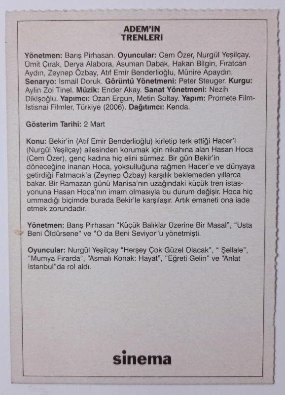 Adem'in trenleri - Nurgül Yeşilçay & Cem Özer ~ [ SİNEMA KARTI ], bir ay önce satışa sunulmuştur.