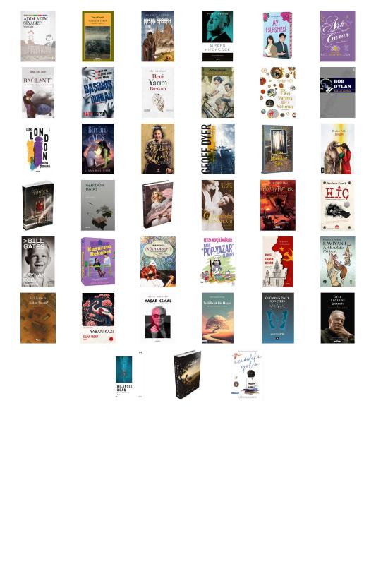 Adım Adım Siyaset - Akçasazın Ağaları 2 - Yusufçuk Yusuf - Alamut Kalesi ve Hasan Sabbah - Alfred Hitchcock - Ay Eşleşmesi - Aşk ve Gurur (Ciltli) - Bağlantı - Başıboş Ruhlar - Beni Yarım Bıraktın - Benimle Oynar Mısın? - Biri Varmış Biri Yokmuş - Bob Dylan - Buzun Çocukları - Büyülü Ateş - Cumhuriyet Kadını Türkan Ayral - Denizde Yine Mükemmel Bir Gün - Doğu İstanbul'un Batısı - Encam - Eğer Peşinden Gelirsem 2 - Geri Dön Hayat - Gölge Serisi 1: Yalanın Gölgesinde (Ciltli) - Güvercinin Kanatları - Harry Potter ve Zümrüdüanka Yoldaşlığı - Hiç Kimse Sıradan Değildir - Kaynak Kod: Yolun Başı - Kusursuz Rekabet - Külhanbeyi - Nasıl Pop-Yazar Olunur? - Pavel Canım Benim - Raviyan-ı Ahbar’dan Hikayeler - Suikast Bürosu - Yaban Kazı - Yaşar Kemal - Çukurova’dan Dünyaya - Yedi Renk Bir Hayat - Ölümden Önce Son Çıkış - Öyle Geçer ki Zaman - İmkansız İnsan - İs Kokan Zeytin Ağacı (Ciltli) - İçimdeki Yolcu