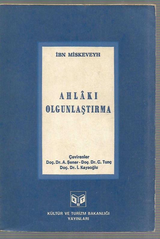 Ahlakı Olgunlaştırma, İbn Miskeveyh tarafından kaleme alınmıştır. Kitap 1983 yılında Kültür ve Turizm Bakanlığı Yayınları tarafından [Ankara] yayınlanmıştır. Bu baskının çevirisi AbdülkadirŞener, İsmet Kayaoğlu, Cihad Tunç tarafından yapılmıştır. 199 sayfadır. Ahlakı Olgunlaştırma adlı eser Türkçe dilindedir.