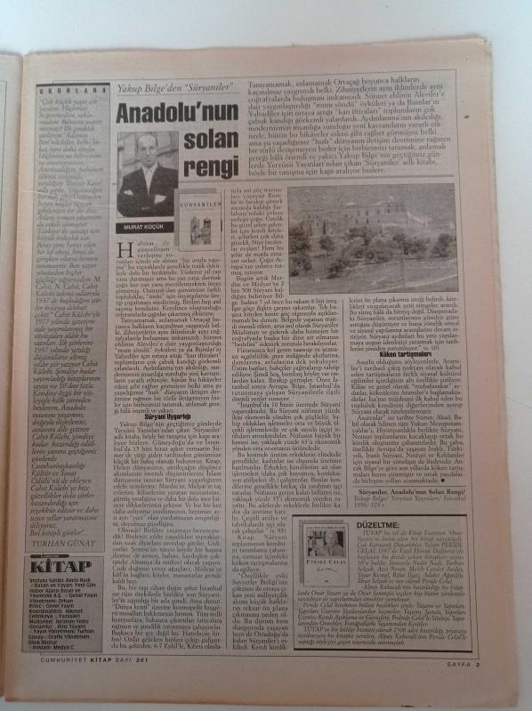 Sayfa Boyutu: 28*31cm Sayfa Sayısı: 20 Cumhuriyet Kitap Gazetesi 7 Kasım 1996 Yıpranma, sararmalar, kupon kesiği ve yırtılmalar zamana bağlı olarak görülebilir