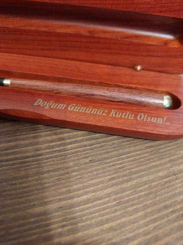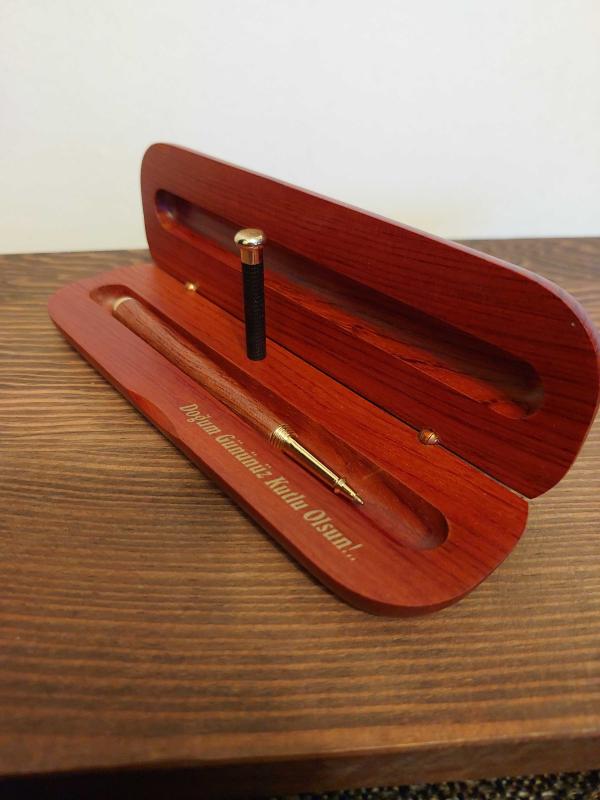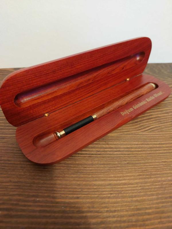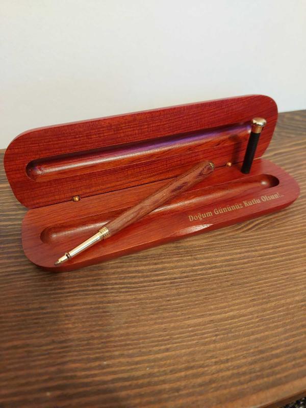 Kendi Ahşap Özel Kutusunda içi bölmeli ahşap dolma kalemdir.Mavi renk yazmaktadır.Herhangi bir kusuru yoktur.Kutusunun iç kısmında Doğum Gününüz Kutlu Olsun yazılı tebrik mesajı bulunmaktadır.Özel günler için ve kalem koleksiyonu yapanlar için güzel bir hediye seçeneğidir.Diğer ilânlarımı incelemeyi unutmayınız.