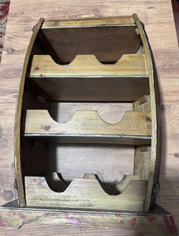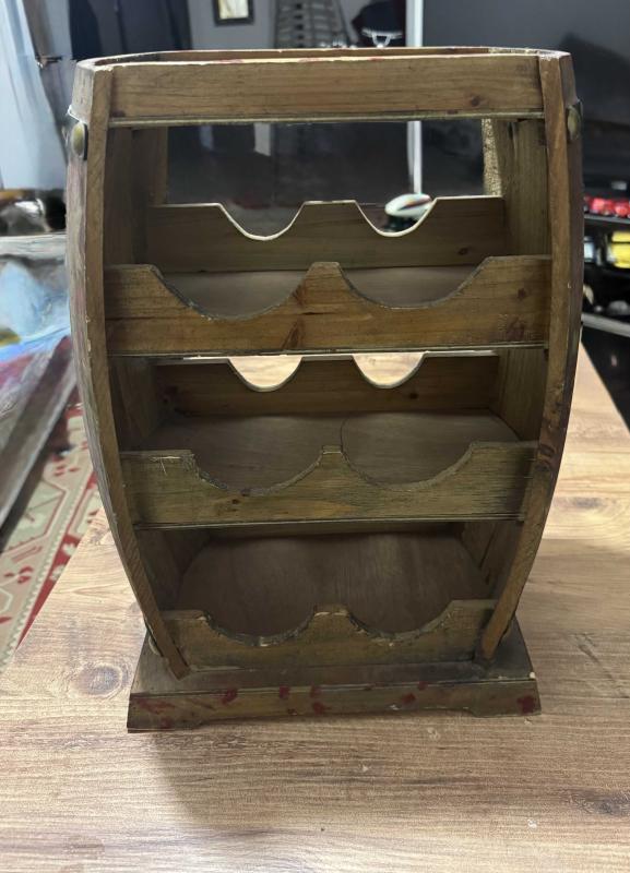 Ahşap Fıçı Tasarımlı Dekoratif Şişe Standı Evinize veya ofisinize otantik bir hava katacak, fıçı formunda tasarlanmış ahşap şaraplık. Hem dekoratif bir obje hem de kullanışlı bir düzenleyicidir. 6 adet şişe bölmesi üst kısımda sunum/bardak alanı. Doğal ahşap, eskitme görünümlü. Temiz, sağlam ve kullanıma hazır., en son 2 ay önce güncellenmiştir.
