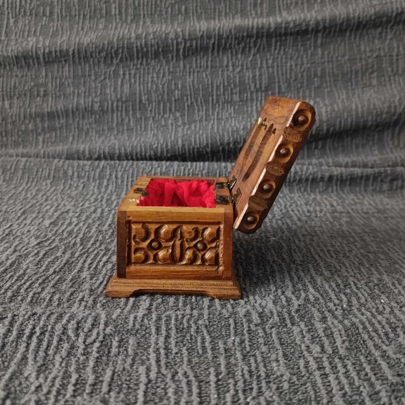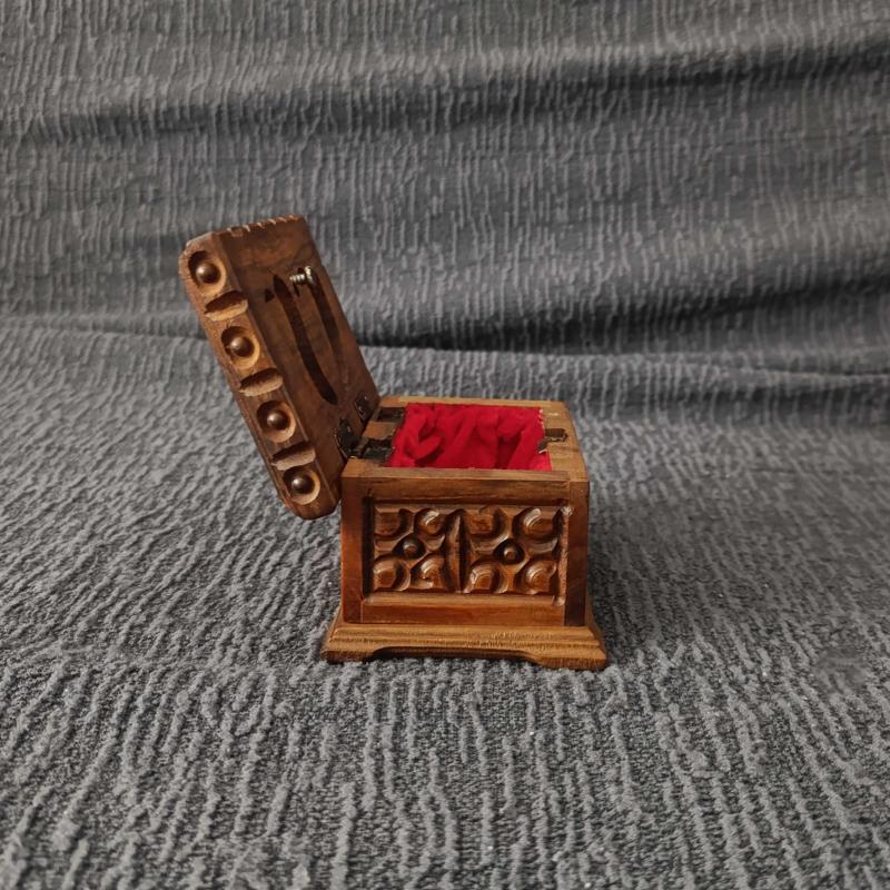 13 x 8 x 9 Cm Ölçülerinde Gizli Açma Kapaklı Ahşap Malzemeden El Yapımı Takı Kutusu
