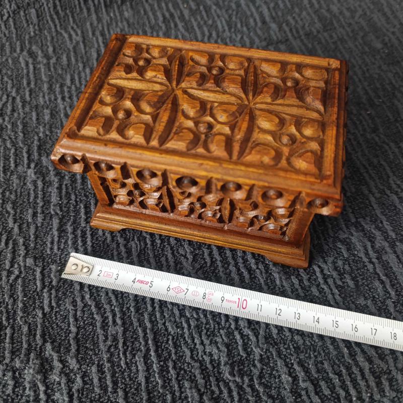 Ahşap Malzemeden El Yapımı Takı Kutusu başlıklı antika/koleksiyon objesi Türkiye menşe’lidir. Objenin ait olduğu dönem bilinmeketedir.