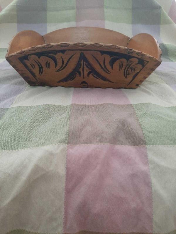 Ahşap Oyma Ekmeklik Sunumluk başlıklı antika/koleksiyon objesi Türkiye menşe’lidir. 1960-1979 arası dönemine aittir.