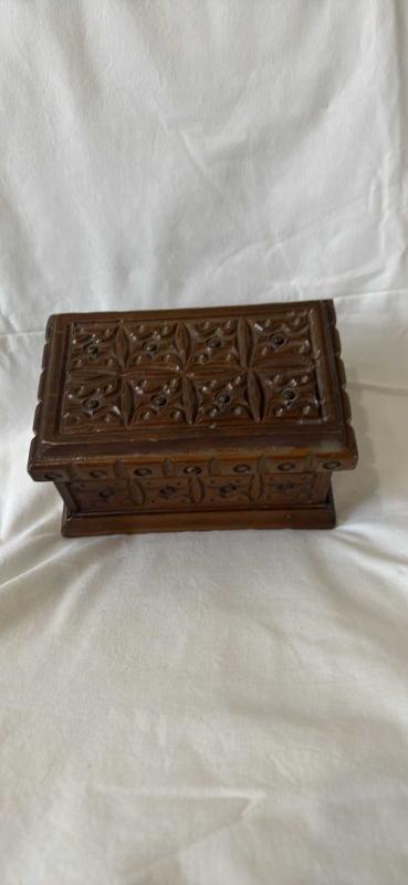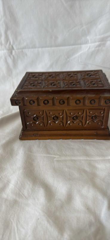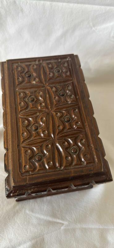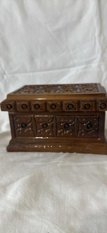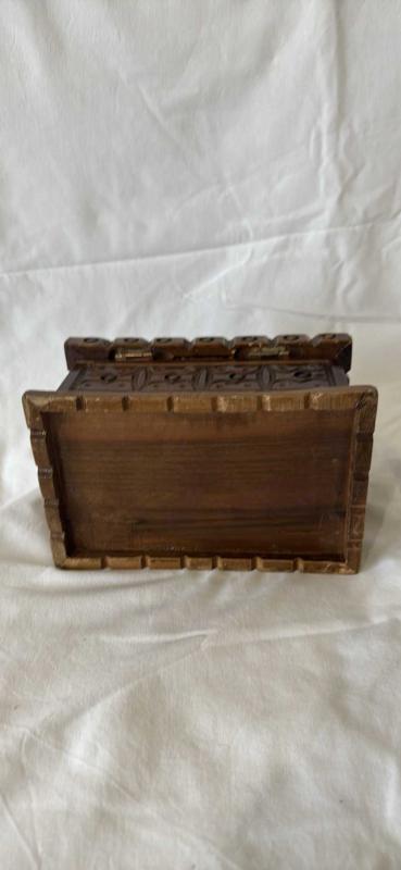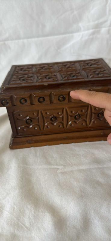 Ahşap Sandık Dekoratif Ahşap Ceviz Oyma gizli Anahtarlı Bilmeceli başlıklı antika/koleksiyon objesi Avrupa menşe’lidir. Objenin ait olduğu dönem bilinmeketedir.