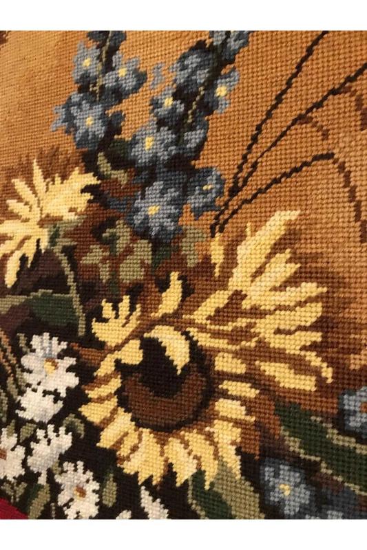 Ahşap çerçeveli Goblen tablo 55 cm 47 cm ölçülerinde başlıklı antika/koleksiyon objesinin menşei belirtilmemiştir. Objenin ait olduğu dönem bilinmeketedir.
