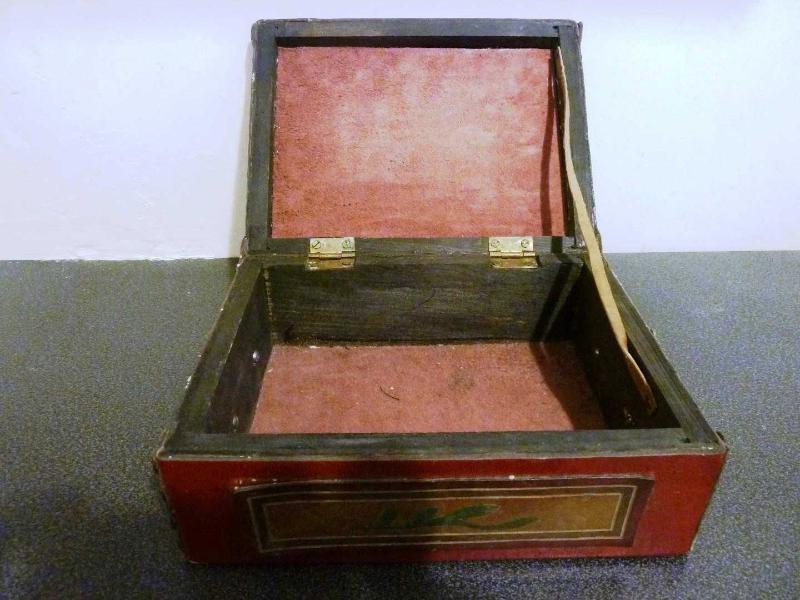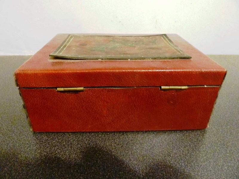 Ahşap deri kaplama mücevher kutu 20x15 Y:8 cm. başlıklı antika/koleksiyon objesinin menşei belirtilmemiştir. 1900-1949 arası dönemine aittir.