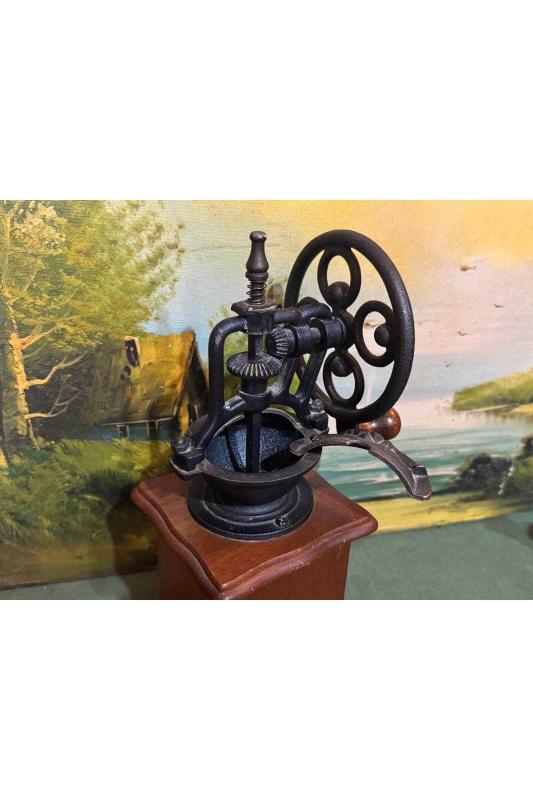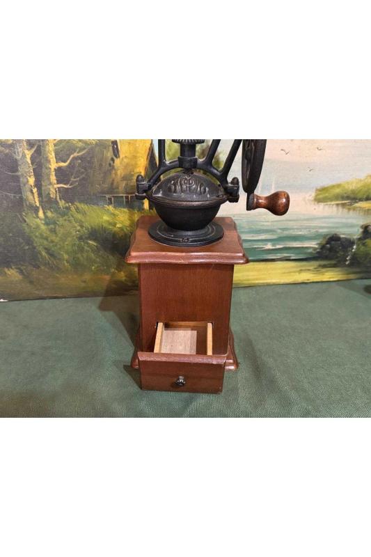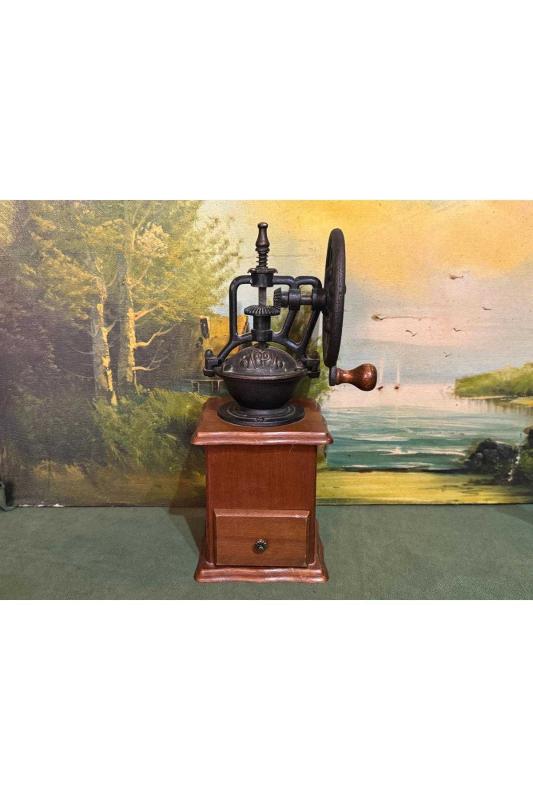 Ahşap kahve değirmeni 29 cm boyunda başlıklı antika/koleksiyon objesinin menşei belirtilmemiştir. Objenin ait olduğu dönem bilinmeketedir.