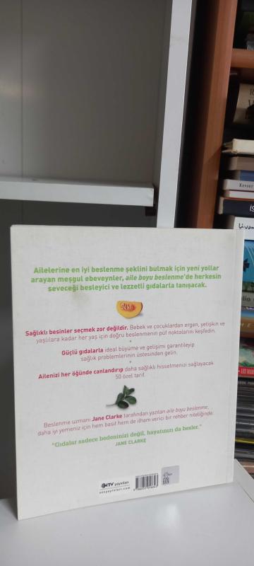 Aile Boyu Beslenme - Dengeli Beslenme, Sağlıklı Kilo, İdeal Beyin Gücü, Enerji Arttırma, Mutlu Sağlıklı Çocuklar, Jane Clarke tarafından kaleme alınmıştır. Kitap 2014 yılında NTV Yayınları tarafından [İstanbul] yayınlanmıştır. Bu baskının çevirisi Nuray Mestci tarafından yapılmıştır. 256 sayfadır. Aile Boyu Beslenme - Dengeli Beslenme, Sağlıklı Kilo, İdeal Beyin Gücü, Enerji Arttırma, Mutlu Sağlıklı Çocuklar adlı eser Türkçe dilindedir.
