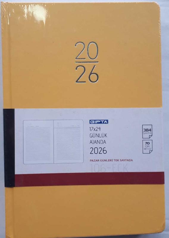 Ajanda 2026 Yılı 17X24 Cm Gıpta ECK-106 Seri Cumartesi ve Pazar Günleri Ayrı Sayfalarda SARI başlıklı antika/koleksiyon objesi Türkiye menşe’lidir. 2000 ve sonrası dönemine aittir.