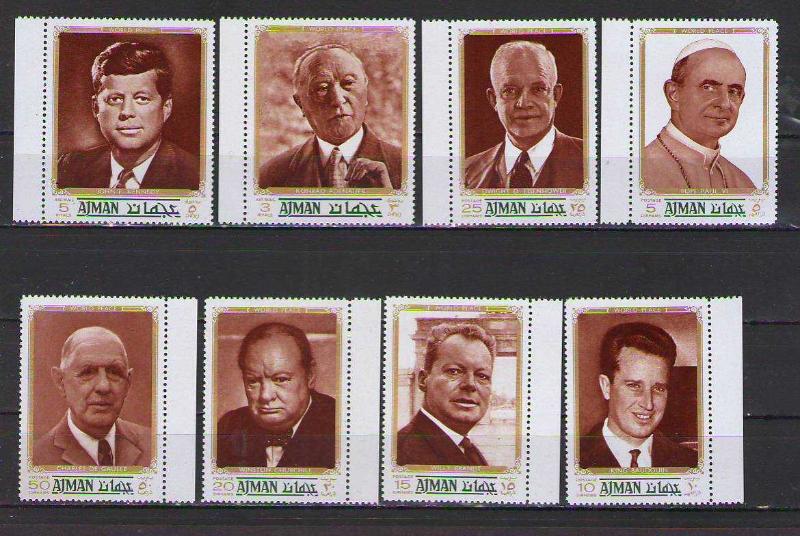 Ajman 1970 - Barış Savaşcıları - Kennedy - Churchill - Ünlüler - MNH - Damgasız