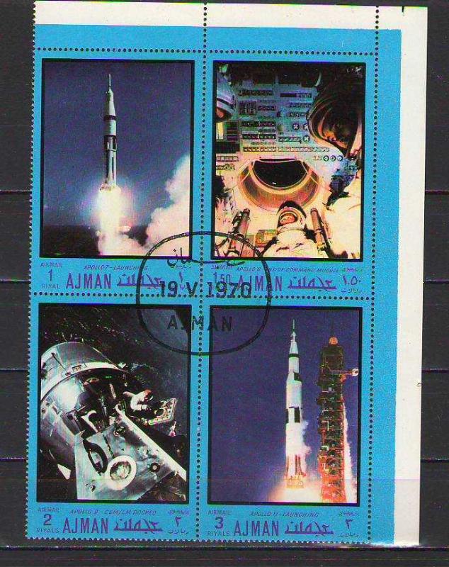 Ajman - Uzay Temalı Damgalı Blok