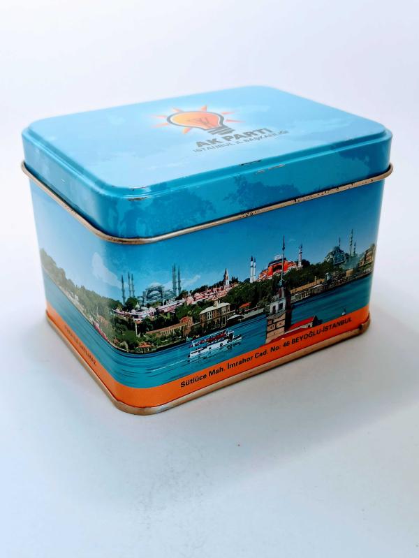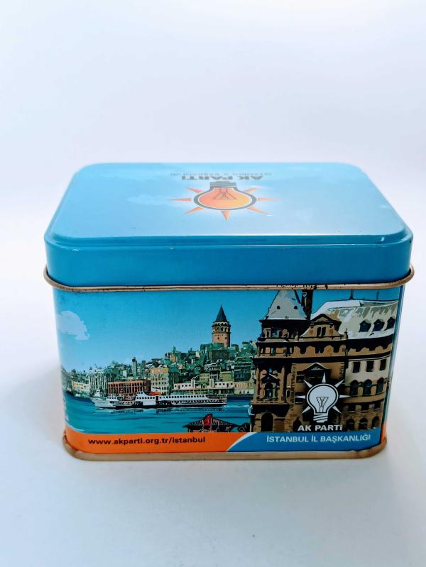 Ak Parti Logolu Boş Teneke Kutu başlıklı antika/koleksiyon objesi Türkiye menşe’lidir. 2000 ve sonrası dönemine aittir.