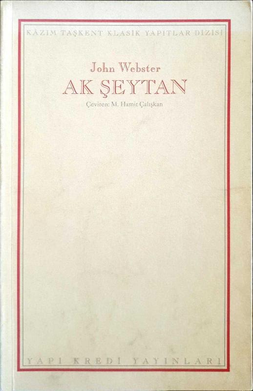 "Ak Şeytan", Shakespeare'in yazdıklarından sonra 17. yüzyıl İngiliz trajedisinin en iyi örnekleri kabul edilen birkaç oyunun yazarı John Webster'ın en tanınmış trajedisidir. 1580 yılında doğduğu, 1598 yılında hukuk öğrenimine başladığı sanılan John Webster, 1602 yılında öğrenimini yarıda bırakıp oyun yazarlığına başladı ve on yıl kadar süren bir "çıraklık" dönemi boyunca, değişik tiyatro kumpanyaları için ortak oyunlar yazdı. Tek başına yazdığı ilk oyun olan "Ak Şeytan" (The White Devil), 1612 yılında sahnelendi ve yayımlandı. Webster yine aynı yıl "Amalfi Düşesi" (The Duchess of Malfi) adlı ikinci oyununu yazdı. Tek başına yazdığı bilinenler içinde günümüze kadar gelen üçüncü ve son oyunu The Devil's Law Case (Şeytanın Davası) ise yaklaşık 1617 yılında sahnelendi. Sonraki yıllarda yine ortak oyunlar yazan Webster'ın 1630 yıllarında öldüğü sanılmaktadır. "Ak Şeytan", kötülüğün her zaman erdem maskesinin ardına saklandığı, doğruyla yanlışın ayırt edilmesinin mümkün olmadığı ve dolayısıyla ahlaki değerlerin bulunmadığı bur dünyayı simgeler. Webster'ın alabildiğine karamsar bir dünya yarattığı bu oyun, toplumdaki aksaklıkların ancak köktenci yaklaşımlarla giderilebileceğini ama böyle bir yaklaşımın olanaksız olduğunu tüm çıplaklığıyla gözler önüne sermektedir. (İç Kapak) Tadımlık III. PERDE I. SAHNE (Roma'da mahkeme salonu) (İçeri Francisco, Monticelso, Danışman ve Kâtip girer.) FRANCISCO Tüm büyük elçilerin Vittoria'nın yargılanmasında Hazır bulunmalarını başarıyla sağladınız. MONTICELSO Hiç de kötü olmadı. Biliyorsunuz ki, efendim, Onu kocasını öldürmekle suçlayabileceğimiz Kesin kanıtlarımız yok. Onun şehvet düşkünlüğünü elçilere göstermek Komşu ülkelerde adının kötüye çıkmasını sağlayacak. Acaba Brachiano da gelecek mi? FRANCISCO Büyük bir küstahlık olur. (Çıkarlar.) (İçeri muhafızlar eşliğinde Flamineo ve Marcello getirilirler. Yanlarında bir Savcı vardır.) SAVCI Demek, kıskıvrak yakalandınız! Pekâlâ -- Şimdi ne kadar kıvrak zekâlı olduğunuzu görelim: Bence eski pezevenklerden başkaları kız kardeşini yargılamamalı... FLAMINEO Ya da boynuzlular. Çünkü şehveti en fazla körükleyen boynuzlulardır. Pezevenkler de olur, çünkü mızrak oyununda hakemler hep eski oyunculardan seçilir. SAVCI Dük hazretleri ile gizlice buluşuyordu. FLAMINEO Sen salağın tekisin; her şeyi herkesin gözü önünde yapmakla suçlanıyorlar. SAVCI Birbirlerini bir kez bile öptükleri bir kanıtlanabilse...!