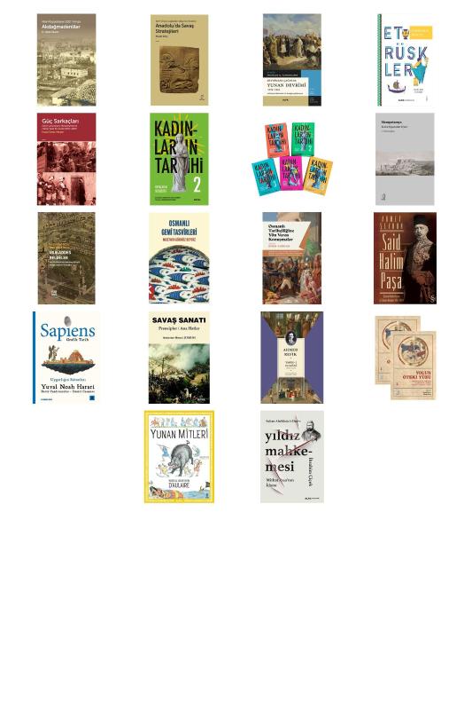 Akdağmadenliler - Anadolu'da Savaş Stratejileri - Devrimler Çağında Yunan Devrimi 1776-1848 - Etrüskler - Güç Sarkaçları - Kadınların Tarihi 2 (Ciltli) - Kadınların Tarihi Set - 5 Kitap Takım (Ciltli) - Mezopotamya - Kadim Uygarlıklar Diyarı - Mukaddes Beldeler - Osmanlı Gemi Tasvirleri - Osmanlı Tarihçiliğine Yön Veren Konuşmalar - Said Halim Paşa - Sapiens: Grafik Tarih İkinci Cilt - Uygarlığın Sütunları - Savaş Sanatı - Tarih-i Gılmânî - Yolun Öteki Yüzü - Yunan Mitleri - Yıldız Mahkemesi