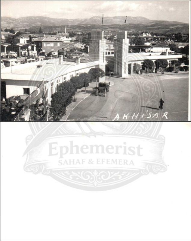 Akhisar şehir meydanı, otobüs terminali ve atlı araba manzarası. (Orijinal Fotoğraf, S/B, 1960'lar, 9x14 cm.), en son bir ay önce güncellenmiştir.
