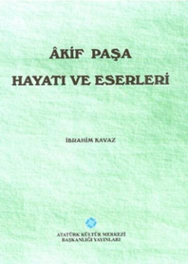 Akif Paşa Hayatı ve Eserleri, İbrahim Kavaz tarafından kaleme alınmıştır. Kitap 2005 yılında Atatürk Kültür Merkezi Yayınları tarafından [Ankara] yayınlanmıştır. 204 sayfadır. Akif Paşa Hayatı ve Eserleri adlı eser Türkçe dilindedir.