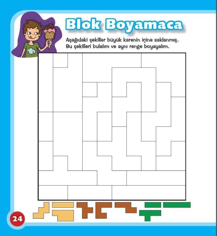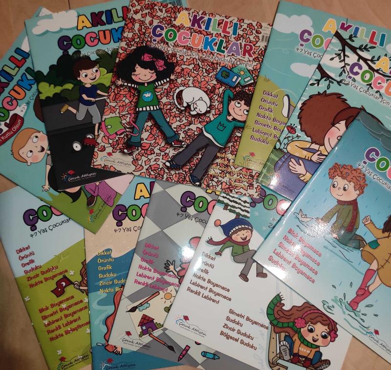 Hakkında: 4-7 yaş grubuna yönelik, farklı tür etkinlikleri bir araya getiren bir yayındır. Dergi içerisindeki bölüm başlıkları ve sayfalardaki uygulamalar çocukların özellikle bilişsel gelişimlerini destekler ve ev ortamında ebeveyn – çocuk arasında kaliteli zaman kullanımına aracılık eder. Tema olarak 'zeka' konusunu tanımlamış ve bu tema için çözüm ortağı olarak, Dünya Zeka Oyunları Federasyonu Türkiye temsilcisi ekipten destek almıştır. Kısa süreli bellek gelişimini destekleyen, konsantrasyon süresini arttırmayı hedefleyen DİKKAT bölümü, Sıralama esasına dayalı çalışma sayfalarından oluşan ÖRÜNTÜ bölümü, Çocukların SUDOKU mantığını kavramaları ve deneyimlemeleri için, farklı zorluk ve yöntem çeşitliliği sunan bölümleri, diğer bölümler takip eder. NOKTA BOYAMACA, BLOK BOYAMACA, SİMETRİ gibi bölümlerde dikkat ve sabırla etkinliği tamamlayan çocuklar, etkinliğin sonunda gizli bir görsele ulaşırlar. LABİRENT KARALAMACA ve RENKLİ LABİRENT bölümlerinde ise, klasik labirentten çıkış yolunu bulma etkinlikleri zenginleştirilmiş ve farklı bir yöntemi deneyecekleri alanlar sunulmuştur.
