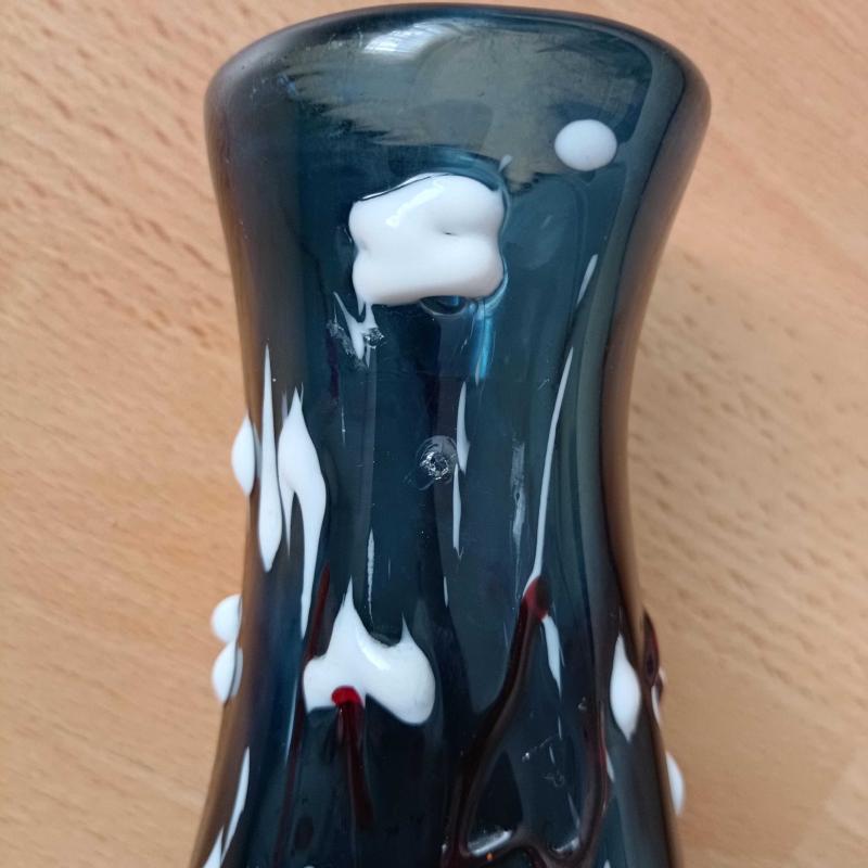 23 Cm Boyunda Akıtma Cam Sanatı İşçilikli Özel Yapım Koparma Murano Vazo. 9/10mm Et Kalınlığı - Ağız çapı 6/6.5 Cm (Küçük Darbe Mevcut Detay Son Resimde)