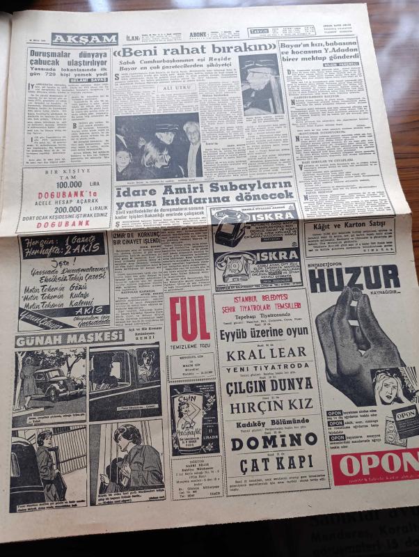 Akşam Gazetesi - 16 Ekim 1960 - Celal Bayar Ve Nedim Ökmen'in 5 Yıl Hapsi İstendi - Köpek Davası Duruşmasında Savcı Celal Bayar'ı Dün İstiklal Harbinden Kaçtığını İma Etti - İsmet İnönü Konuşmuyor - Fatin Rüştü Zorlu'nun Annesi Zorlu Davranıyor - Adnan Menderes Avukatı Burhan Apaydın'a Yıldırım Telgrafı Çekti - Celal Bayar'ın Çeşmesi Akmıyor - Celal Bayar'dan İki Avukat Yüzer Bin Lira İstedi - Yüksek Adalet Divanı Başkanı Salim Başol - Yüksek Adalet Divanı Başsavcısı Altay Ömer Egesel - Ratip Tahir Burak'ın Fırçasından Köpek Davası - 6 7 Eylül Kararnameleri Sanıklara Dün Dağıtıldı - Kızkulesi Kahramanı Çizen Suat Yalaz - Yassıada Lokantasında İlk Gün 729 Kişi Yemek Yedi - Günah Maskesi Çizgi Roman Resimleyen Remzi - Kazova Mağazaları - Geyşa'nın Hatıra Defteri Yazan Kimiko Omura Yazı Dizisi - Bize Barbaroslu Derler Çizen Ratip Tahir Burak - Can Bartu Dün Alsancak Stadının Kahramanıydı - Beşiktaş Adana Demirspor'u Yendi - Yabancı Gözüyle Yassıada Mahkemeleri adlı eser, Kitap > Süreli Yayınlar > Gazeteler > Türkiye > Genel > Günlük kategorisinde İkinci El olarak satıştadır.