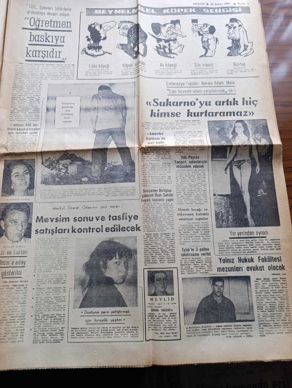 Akşam Gazetesi - 22 Şubat 1967 - İhtilalci Milli Devrim Ordusu Teşkilatı Başkanı Mucip Ataklı'dır - Film Yıldızı Salih Güney Nevin Sarıoğlu'nu Eve Kapatmış - Marlon Brando Otel Borcunu Amerika'da Verecek - Kıbrıs Ve Barzani Konusunda Irak'la Görüşüldü - Karadeniz Üniversitesinde Süresiz Boykot Var - Milli Takım Ve Galatasaray'ın Efsane İsmi Turgay Şeren Evlendi Fotoğraf - İstanbul Valisi Vefa Poyraz Belediyeyi Suçladı - Dağlar Benimdir Yazan ve Çizen Suat Yalaz - Sayın Sunay Siz A.P. li Değilsiniz Yazan Çetin Altan Köşe Yazısı - Beynelmilel Köpek Sergisi - Elizabeth Taylor Ve Richard Burton Oscar'a Aday Gösterildi - Şehzade Bayazıt İran'da Yazan Ve Çizen Ratip Tahir Burak - Aşk Meleği Çizen Ethem Çalışkan - Avrupa'da Yasak Aşklar Celalettin Çetin Yazıyor - Yayın Dünyası Köşesi - Türk Edebiyatında Hikaye Ve Roman - Berlin Ve Münih Yazan Haldun Taner - Türkiye İrlanda Maçı Saat 15.00 de Başlayacak Maçı Radyo Yayınlayacak - Milli Takımımız Bugün 122. Maçını Oynuyor - İrlanda'da Cantwell, Nur Ökten tarafından kaleme alınmıştır. Akşam Gazetesi - 22 Şubat 1967 - İhtilalci Milli Devrim Ordusu Teşkilatı Başkanı Mucip Ataklı'dır - Film Yıldızı Salih Güney Nevin Sarıoğlu'nu Eve Kapatmış - Marlon Brando Otel Borcunu Amerika'da Verecek - Kıbrıs Ve Barzani Konusunda Irak'la Görüşüldü - Karadeniz Üniversitesinde Süresiz Boykot Var - Milli Takım Ve Galatasaray'ın Efsane İsmi Turgay Şeren Evlendi Fotoğraf - İstanbul Valisi Vefa Poyraz Belediyeyi Suçladı - Dağlar Benimdir Yazan ve Çizen Suat Yalaz - Sayın Sunay Siz A.P. li Değilsiniz Yazan Çetin Altan Köşe Yazısı - Beynelmilel Köpek Sergisi - Elizabeth Taylor Ve Richard Burton Oscar'a Aday Gösterildi - Şehzade Bayazıt İran'da Yazan Ve Çizen Ratip Tahir Burak - Aşk Meleği Çizen Ethem Çalışkan - Avrupa'da Yasak Aşklar Celalettin Çetin Yazıyor - Yayın Dünyası Köşesi - Türk Edebiyatında Hikaye Ve Roman - Berlin Ve Münih Yazan Haldun Taner - Türkiye İrlanda Maçı Saat 15.00 de Başlayacak Maçı Radyo Yayınlayacak - Milli Takımımız Bugün 122. Maçını Oynuyor - İrlanda'da Cantwell adlı eser Türkçe dilindedir.