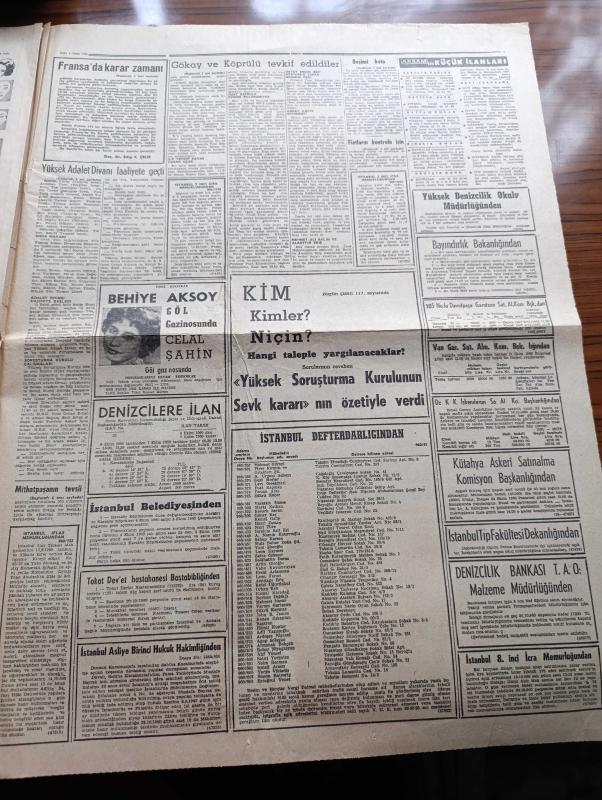 Akşam Gazetesi - 4 Ekim 1960 - Fahrettin Kerim Gökay Ve Fuat Köprülü Yassıada'da - 6 7 Eylül Sanığı Oktay Engin Alaeddin Eriş Hasan Uçar M. Ali Balin'de Tevkif Edildiler - Ekrem Alican Bir Konuşma Yaptı - Yüksek Adalet Divanı Faaliyete Geçti - Duvarlarda İnkılap Aleyhtarı Yazılar Yazanlar Aranıyor - Necdet Calp Başbakanlık Hususi Kalem Müdürü Oldu - Dünyanın Sayılı Zengini Nubar Gülbenkyan Geldi Ve Gitti - Kızkulesi Kahramanı Çizen Suat Yalaz - 93 İhtilali Yazan Abdullah Ziya Kozanoğlu Yazı Dizisi - Dansöz Ayşe Nana Roma'da Yargılanıyor - Günahım Seni Sevmek Aşk Ve His Romanı Resimleyen Remzi - Geyşa'nın Hatıra Defteri Yazan Kimiko Omura Yazı Dizisi - Bize Barbaroslu Derler Yazan Çizen Ratip Tahir Burak - Kont Senlibenli Çizgi Roman - Nazlı İle Hamza Çizgi Roman - Vadiler Hakimi Çizgi Roman - Galatasaray Bahia İle 1 1 Berabere Kaldı - Mithatpaşanın Tevsii Mi Yüzbinlik Yeni Bir Stad Mı - Yorgun Beşiktaş 4 Puan Alamaz - Spor Yazarları Kongresi Yapıldı - Türkiye Yüzme Şampiyonası adlı eser, Kitap > Süreli Yayınlar > Gazeteler > Türkiye > Genel > Günlük kategorisinde İkinci El olarak satıştadır.