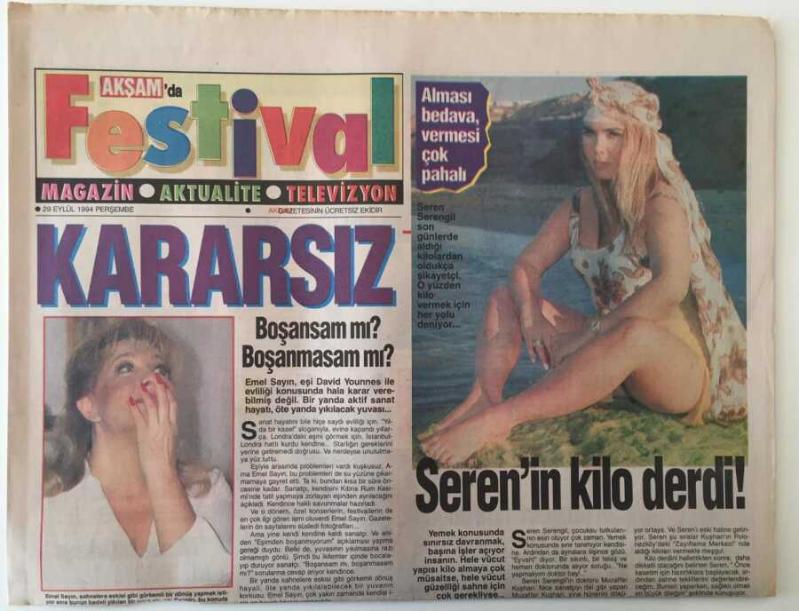 Akşam Gazetesi Festival Eki 29 Eylül 1994 - Emel Sayın Eşi David Younnes İle Evliliği Konusunda Kararsız , Seren Serengil Kilo Derdi GZ20487, en son bir ay önce güncellenmiştir.