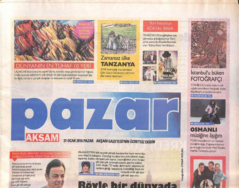 Akşam Gazetesi Pazar Eki 31 Ocak 2016 - Yeni Fenomen Köksal Baba - Dice Kayek İstanbul'u Salladı - İstanbul'u Büken Fotoğrafçı GZ136387, en son 17 gün önce güncellenmiştir.