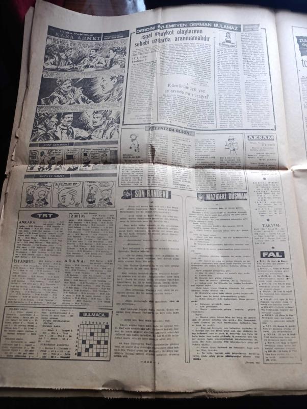 Akşam Gazetesi Sayfa Boyutu : 42*58 cm Sayfa Sayısı: 8 Yıpranma, sararmalar, kupon kesiği ve yırtılmalar zamana bağlı olarak görülebilir Not: Tam takım gazetedir