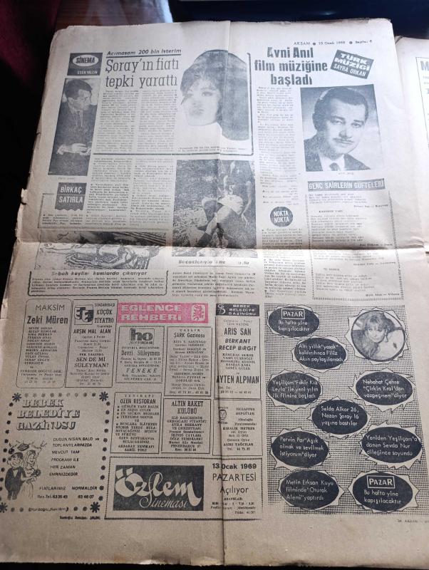 Akşam Gazetesi - Turkish Newspaper - 10 Ocak 1969 - anayasayı koruma tasarısı meclise verildi - komandoculuk ihtilal getirir - İsmet İnönü fikirler zorla ve saldırı ile yürütülemez - Ortadoğu Teknik Üniversitesi tatil oldu orman fakültesi yurdu işgal edildi - Deniz Ulaş İş sendikası tarafından alınan grev kararı uygulanmaya başladı Fotoğrafı - Yılın en başarılı sanatçıları - en iyi oyun yazarı Melih Cevdet Anday Fotoğrafı - en iyi erkek oyuncu Münir Özkul Fotoğrafı - 1967 1968 tiyatro sezonunun en iyi kadın oyuncusu seçilen Nisa Serezli Fotoğrafı - en iyi rejisör Sermet Çağan Fotoğrafı - üniversitede öğrenciler yönetime katılacak - Türkiye'de eğitim sorunu ve sosyalizm yazan Çetin Altan - Üç hilalli komandolar yazan Altan Öymen - işte kıyılan 2 öğretmen bir arada Birisi TÖS'ün eski genel başkanı Feyzullah Ertuğrul öteki yazarımız Mahmut Makal - Türkan Şoray'ın fiyatı tepki yarattı Fotoğrafı - Avni Anıl film müziğine başladı Fotoğrafı - Ogün Altıparmak futbolu bırakacağım dedi fotoğraf, Nur Ökten tarafından kaleme alınmıştır. Akşam Gazetesi - Turkish Newspaper - 10 Ocak 1969 - anayasayı koruma tasarısı meclise verildi - komandoculuk ihtilal getirir - İsmet İnönü fikirler zorla ve saldırı ile yürütülemez - Ortadoğu Teknik Üniversitesi tatil oldu orman fakültesi yurdu işgal edildi - Deniz Ulaş İş sendikası tarafından alınan grev kararı uygulanmaya başladı Fotoğrafı - Yılın en başarılı sanatçıları - en iyi oyun yazarı Melih Cevdet Anday Fotoğrafı - en iyi erkek oyuncu Münir Özkul Fotoğrafı - 1967 1968 tiyatro sezonunun en iyi kadın oyuncusu seçilen Nisa Serezli Fotoğrafı - en iyi rejisör Sermet Çağan Fotoğrafı - üniversitede öğrenciler yönetime katılacak - Türkiye'de eğitim sorunu ve sosyalizm yazan Çetin Altan - Üç hilalli komandolar yazan Altan Öymen - işte kıyılan 2 öğretmen bir arada Birisi TÖS'ün eski genel başkanı Feyzullah Ertuğrul öteki yazarımız Mahmut Makal - Türkan Şoray'ın fiyatı tepki yarattı Fotoğrafı - Avni Anıl film müziğine başladı Fotoğrafı - Ogün Altıparmak futbolu bırakacağım dedi fotoğraf adlı eser Türkçe dilindedir.