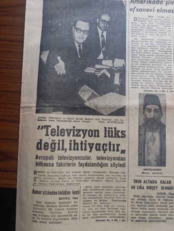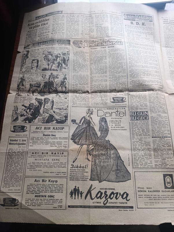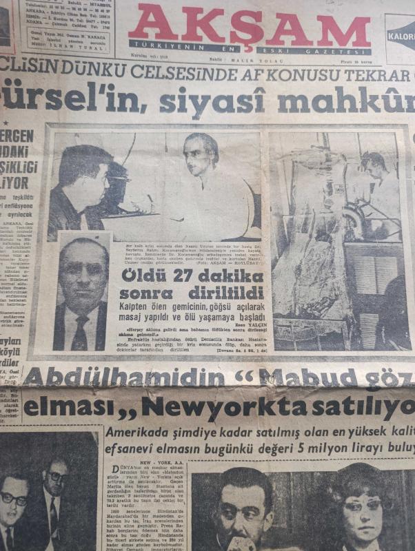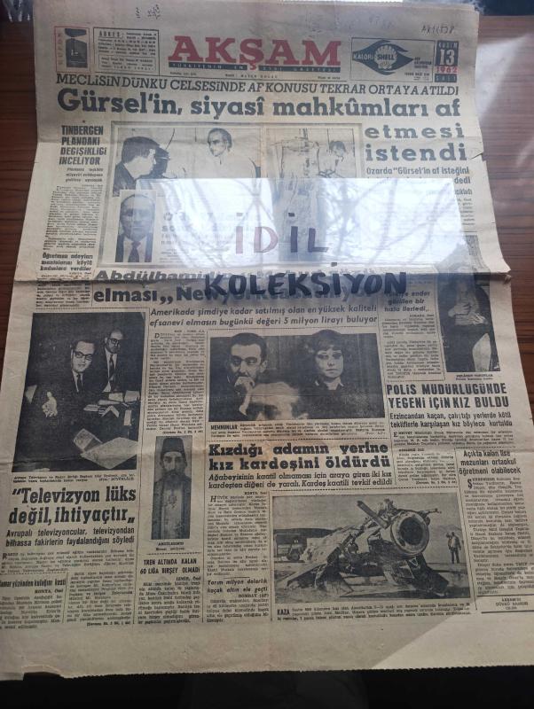 Akşam Gazetesi - Turkish Newspaper - 13 Kasım 1962 - meclisin dünkü celsesinde af konusu tekrar ortaya atıldı - Cemal Gürsel'in siyasi mahkumları affetmesi istendi - Hollandalı profesör Tinbergen değişikliği inceliyor - Abdülhamit'in Mabud Gözü elması New York'ta satılıyor - Thalidomide ilacı yüzünden kolsuz dünyaya gelen çocuğu öldürmekten sanık olarak yargılanan Belçikalı anne Suzanne Vandeput Fotoğrafı - televizyon lüks değil ihtiyaçtır - açıkta kalan lise mezunları ortaokul öğretmeni olabilecek - altay'dan gelen yiğit yazan ve çizen Suat Yalaz - Murat Davman'ın son macerası azrail'in habercisi yazan Ümit Deniz yazı dizisi - Kazova giyim - Hindistan Amerika'da uçak istedi - Doğu için özel jandarma yetiştiriliyor - Duman çetesinden bir şaki tutuldu - Fenerbahçe bu gece Levsky ile karşılaşıyor - Süreyya milli takım kadrosundan çıkarıldı - basketbol milli takımı belli oldu - toto'da 13 ve 12 bilen yok - akşamın Spor Toto tahmin tablosu - Türk futbol federasyonu müşaviri Doğan Koloğlu adlı eser, Kitap > Süreli Yayınlar > Gazeteler > Türkiye > Genel > Günlük kategorisinde İkinci El olarak satıştadır.