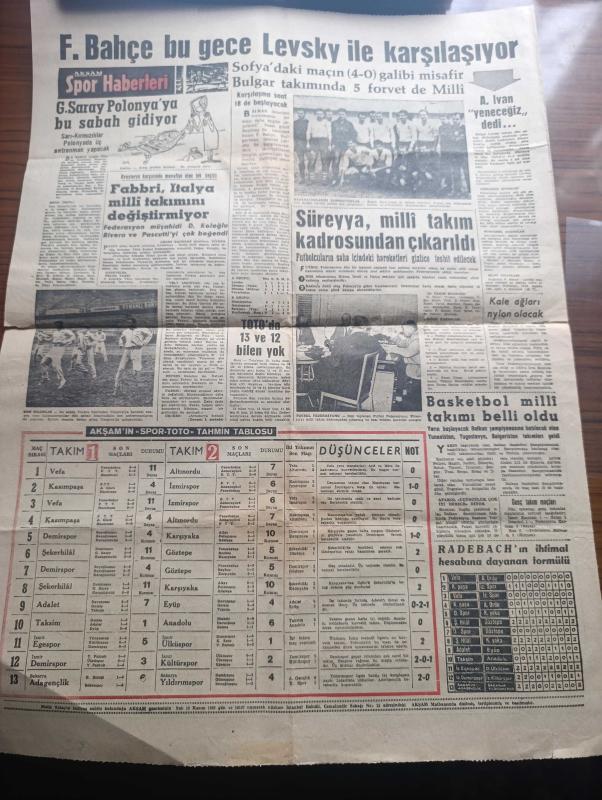 Akşam Gazetesi - Turkish Newspaper - 13 Kasım 1962 - meclisin dünkü celsesinde af konusu tekrar ortaya atıldı - Cemal Gürsel'in siyasi mahkumları affetmesi istendi - Hollandalı profesör Tinbergen değişikliği inceliyor - Abdülhamit'in Mabud Gözü elması New York'ta satılıyor - Thalidomide ilacı yüzünden kolsuz dünyaya gelen çocuğu öldürmekten sanık olarak yargılanan Belçikalı anne Suzanne Vandeput Fotoğrafı - televizyon lüks değil ihtiyaçtır - açıkta kalan lise mezunları ortaokul öğretmeni olabilecek - altay'dan gelen yiğit yazan ve çizen Suat Yalaz - Murat Davman'ın son macerası azrail'in habercisi yazan Ümit Deniz yazı dizisi - Kazova giyim - Hindistan Amerika'da uçak istedi - Doğu için özel jandarma yetiştiriliyor - Duman çetesinden bir şaki tutuldu - Fenerbahçe bu gece Levsky ile karşılaşıyor - Süreyya milli takım kadrosundan çıkarıldı - basketbol milli takımı belli oldu - toto'da 13 ve 12 bilen yok - akşamın Spor Toto tahmin tablosu - Türk futbol federasyonu müşaviri Doğan Koloğlu, Malik Yolaç tarafından kaleme alınmıştır. Akşam Gazetesi - Turkish Newspaper - 13 Kasım 1962 - meclisin dünkü celsesinde af konusu tekrar ortaya atıldı - Cemal Gürsel'in siyasi mahkumları affetmesi istendi - Hollandalı profesör Tinbergen değişikliği inceliyor - Abdülhamit'in Mabud Gözü elması New York'ta satılıyor - Thalidomide ilacı yüzünden kolsuz dünyaya gelen çocuğu öldürmekten sanık olarak yargılanan Belçikalı anne Suzanne Vandeput Fotoğrafı - televizyon lüks değil ihtiyaçtır - açıkta kalan lise mezunları ortaokul öğretmeni olabilecek - altay'dan gelen yiğit yazan ve çizen Suat Yalaz - Murat Davman'ın son macerası azrail'in habercisi yazan Ümit Deniz yazı dizisi - Kazova giyim - Hindistan Amerika'da uçak istedi - Doğu için özel jandarma yetiştiriliyor - Duman çetesinden bir şaki tutuldu - Fenerbahçe bu gece Levsky ile karşılaşıyor - Süreyya milli takım kadrosundan çıkarıldı - basketbol milli takımı belli oldu - toto'da 13 ve 12 bilen yok - akşamın Spor Toto tahmin tablosu - Türk futbol federasyonu müşaviri Doğan Koloğlu adlı eser Türkçe dilindedir.