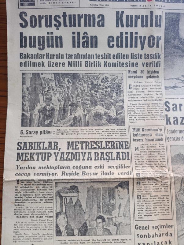 Akşam Gazetesi - Turkish Newspaper - 20 Haziran 1960 - soruşturma kurulu bugün ilan ediliyor - Suçlular ve diğerleri yazan Doçent Doktor Edip F. Çelik Başmakale - bakanlar kurulu tarafından tespit edilen liste Milli Birlik komitesine verildi - Galatasaray mezunları pilav günü fotoğraf - Sarıyer'deki esrarlı trafik kazasında iki genç öldü - Ödemiş şilebinde 100 kilo Afyon ele geçirildi - Adnan Menderes'e 60 bin dolarlık döviz nasıl gönderilmiş - Atatürk köşkü depo yapılmış - Güvenevler'in dertli sakinleri kongre yaptı fotoğraf - Sabıklar 155 bin liralık kumaşı parasız almış - Kız kulesi kahramanı yazan Abdullah Ziya Kozanoğlu Çizen Suat Yalaz - Dördüncü Murad siyah Zambak yazan Suzan Sözen Yazı Dizisi - Sabıklar mikro teyple emirleri tespit etmişler - radyoda köy programları yer alacak - Aziz Nesin Ratip Tahir Ve Suat Yalaz TEF Yarın çıkıyor - olimpiyatlara katılacak olan 119 kişilik kafile 70 kişiye indiriliyor - Beşiktaş Karagümrük karşısında terledi 0 0 fotoğraf - Nur Ökten, Malik Yolaç tarafından kaleme alınmıştır. Akşam Gazetesi - Turkish Newspaper - 20 Haziran 1960 - soruşturma kurulu bugün ilan ediliyor - Suçlular ve diğerleri yazan Doçent Doktor Edip F. Çelik Başmakale - bakanlar kurulu tarafından tespit edilen liste Milli Birlik komitesine verildi - Galatasaray mezunları pilav günü fotoğraf - Sarıyer'deki esrarlı trafik kazasında iki genç öldü - Ödemiş şilebinde 100 kilo Afyon ele geçirildi - Adnan Menderes'e 60 bin dolarlık döviz nasıl gönderilmiş - Atatürk köşkü depo yapılmış - Güvenevler'in dertli sakinleri kongre yaptı fotoğraf - Sabıklar 155 bin liralık kumaşı parasız almış - Kız kulesi kahramanı yazan Abdullah Ziya Kozanoğlu Çizen Suat Yalaz - Dördüncü Murad siyah Zambak yazan Suzan Sözen Yazı Dizisi - Sabıklar mikro teyple emirleri tespit etmişler - radyoda köy programları yer alacak - Aziz Nesin Ratip Tahir Ve Suat Yalaz TEF Yarın çıkıyor - olimpiyatlara katılacak olan 119 kişilik kafile 70 kişiye indiriliyor - Beşiktaş Karagümrük karşısında terledi 0 0 fotoğraf - Nur Ökten adlı eser Türkçe dilindedir.