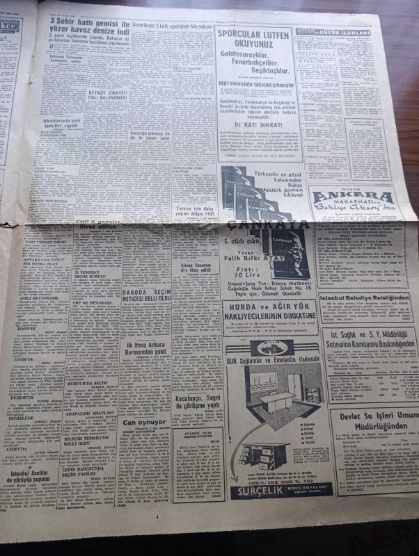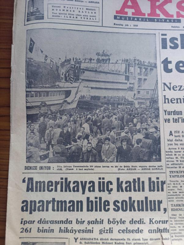 Akşam Gazetesi - Turkish Newspaper - 23 Aralık 1960 - Aziz Atatürk'ün heykeline yapılan tecavüz hareketi sebebiyle İskenderun'da yeni tevkifler yapıldı - nezareti alınanlardan 135 i tahliye edildi - Dün İstinye tersanesinde bir yüzer havuz ve bir de şehir hattı vapuru denize indirildi Fotoğrafı - Edirne'de üniversite kurulması şarttır - sanayi bakanı Şahap Kocatopçu yurda geldi - CHP'li gençler kurucu meclise en az 2 temsilci göndermek istiyor - göbek dansı New York'ta yaygın - Tarsus gemisi için dalış yapan dalgıç Hasan Boztepe öldü - Adana canavarı Bilal Kutluca dün idam edildi fotoğraf - İpar davasında bir şahit Amerika'ya üç katlı bir apartman bile sokulur dedi - Hülagünün gözdesi yazan Abdullah Ziya Kozanoğlu Çizen Suat Yalaz - İstanbul'da bugün bu gece sinema tiyatro programı - Ateşli kız Gina yazan George Albert Gley Yazı Dizisi - Fenerbahçe'nin Beşiktaş ile yapacağı kritik maçta Can Bartu oynayacak - Galatasaray Ankara'ya gitti - Beşiktaş yine topsuz çalıştı - Spor Toto adlı eser, Kitap > Süreli Yayınlar > Gazeteler > Türkiye > Genel > Günlük kategorisinde İkinci El olarak satıştadır.