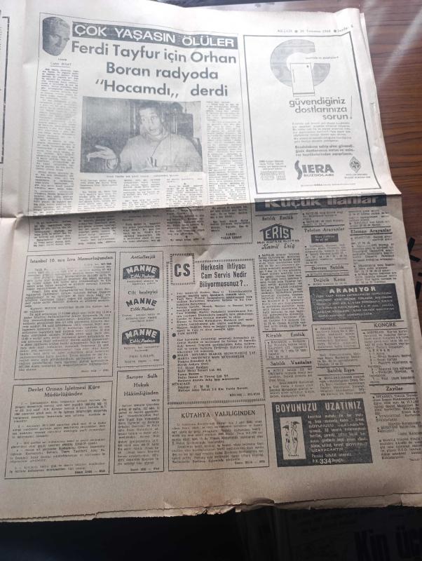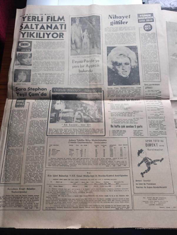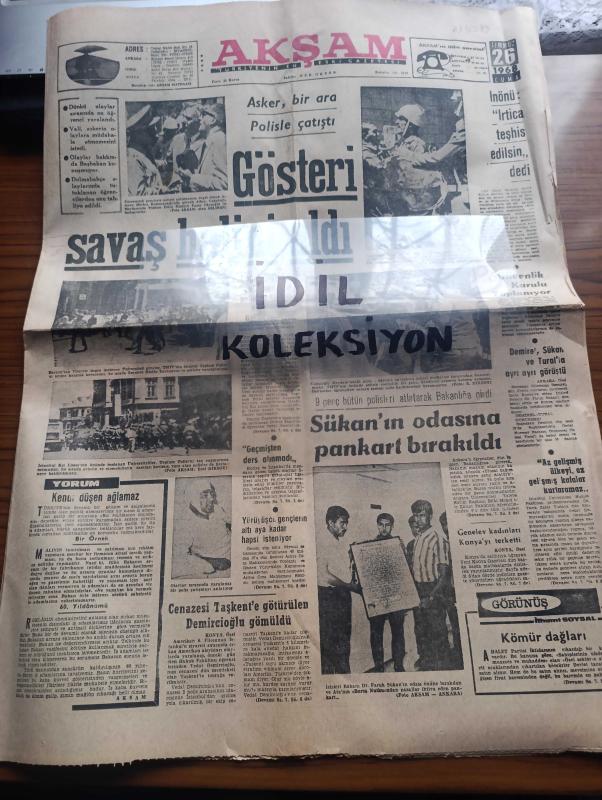 Akşam Gazetesi - Turkish Newspaper - 26 temmuz 1968 - Asker bir ara polisle çatıştı gösteri savaş halini aldı - görevli albay Cağaloğlu meydanında toplum polis müdürü Yaşar Okçuoğlu ile tartışıyorlar fotoğraf - üniversiteli gençler TMTF'nin önünde toplum polisini önüne katarak kovalamış Fotoğrafı - İstanbul kız lisesi önünde toplanan üniversiteliler toplum polisini taş yağmuruna tutmuşlar fotoğraf - Faruk Sükan'ın odasına Bursa nutkundan pasajlar ihtiva eden pankart bırakıldı Fotoğrafı - cenazesi Taşkent'e götürülen Vedat Demircioğlu gömüldü - yürüyüşçü gençlerin altı aya kadar hapsi isteniyor - karaoğlan'ın maceraları yazan ve çizen Suat Yalaz - Taş yazan Çetin Altan - Ferdi Tayfur için Orhan Boran radyoda hocamdı derdi yazan Cahit Irgat - Ajda Pekkan Ve Leyla Sayar fotoğraf - beyaz perdeye yeni Ayşecik bulundu Funda Gürçen fotoğraf - Atlı karınca filmi Belgin Doruk İzzet Günay fotoğraf - bu hafta çok sevilen 5 şarkı - Fenerbahçe bu yıl ne yapabilir - Zafer Beşiktaş'ın olacaktır adlı eser, Kitap > Süreli Yayınlar > Gazeteler > Türkiye > Genel > Günlük kategorisinde İkinci El olarak satıştadır.