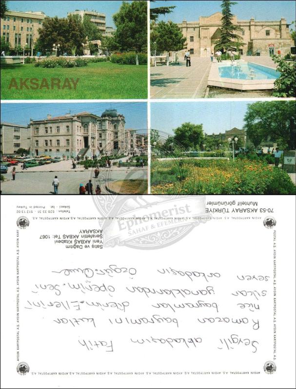 Aksaray, Şehir, Kartpostal, 1970’ler: Hükümet konağı, park alanı, havuzlu meydan, resmi binalar ve gündelik şehir yaşamı., en son 2 ay önce güncellenmiştir.