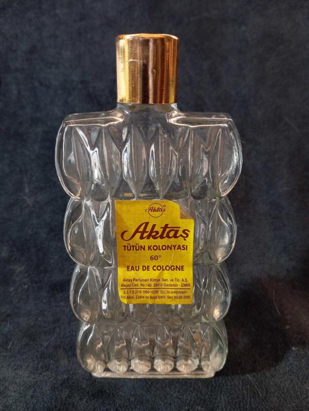 Aktaş Tütün Kolonyası 60° şişe boş başlıklı antika/koleksiyon objesi Türkiye menşe’lidir. Objenin ait olduğu dönem bilinmeketedir.