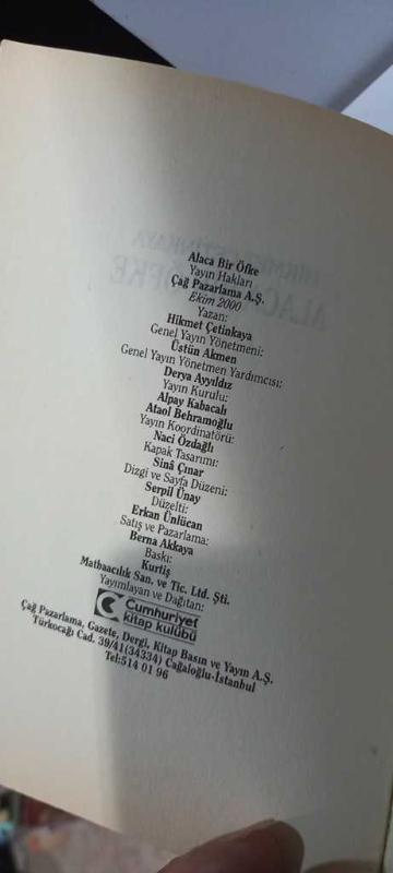 Alaca Bir Öfke, Hikmet Çetinkaya tarafından kaleme alınmıştır. Eser Yayın Koordinatörü: Naci Özdağlı editörlüğünde hazırlanmıştır. Kitap 2000 yılında Cumhuriyet Kitapları tarafından [İstanbul] yayınlanmıştır. Bu baskının çevirisi Yayın Yönetmeni: Üstün Akmen tarafından yapılmıştır. 172 sayfadır. Alaca Bir Öfke adlı eser Türkçe dilindedir.