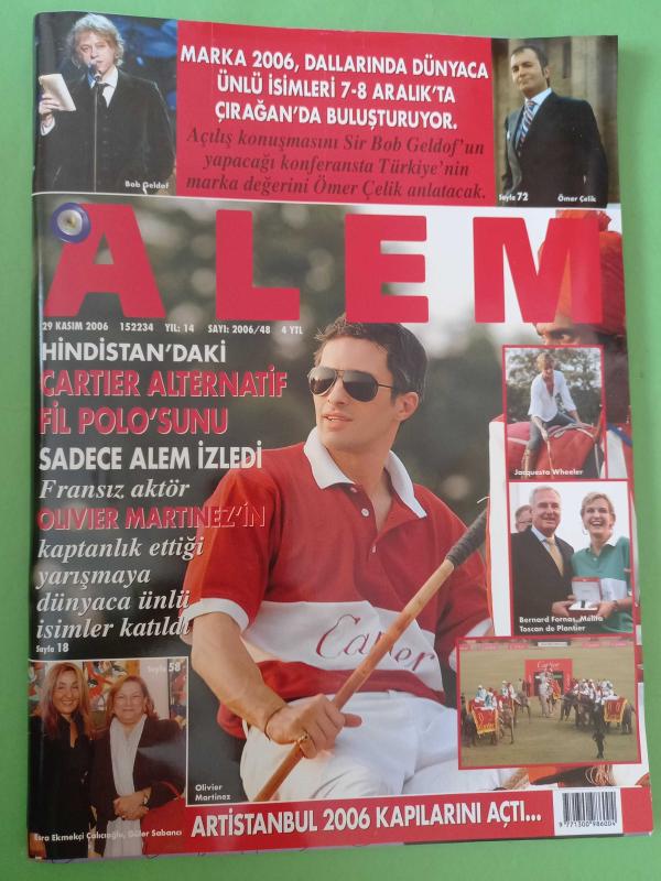 Alem Magazin Dergi 29 Kasım 2006 Sir Bob Geldof,Oliver Martinez,Güler Sabancı,Bernard Forması,Melita,Tokcan,Metin Şahane,Nazlı Öztarhan,Osman Boyner,Suzan Sabancı,Osman Göksu,Bike Gürsel,Şerif Kaynar,Ece Şükran,Sema Bada,Eva Cavallı,Catherine Malandrıno,Antonio Berardı, adlı eser Türkçe dilindedir.